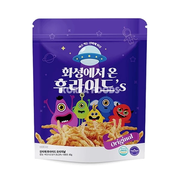 Seasoned Dried Squid 39.6% [Squid (Mollusc), Sugar, Salt, Humectant: E420, Dextrin, Sweetener: E960c, Flavour Enhancer: E621, Flavourings, Ethanol, Preservatives: E270, E202; Emulsifier: E475, Acidity Regulators: E325, E330; Acetic Acid], Wheat Flour, Corn Starch, Canola Oil, Corn Oil, Salt, Flavour Enhancer: E621, Dried Egg White Powder, Dried Garlic Powder, White Pepper Powder, Sweetener: E960, Red Pepper Powder.