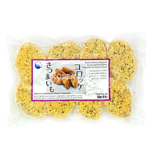 Sweet Potato (61%), Batter (Water, Wheat Flour, Corn Starch, Salt, Thickener E412, Sugar), Breadcrumbs (Wheat Flour, Palm Oil, Yeast, Colour E160a, Salt, Sugar), Black Sesame Seeds, Salt.